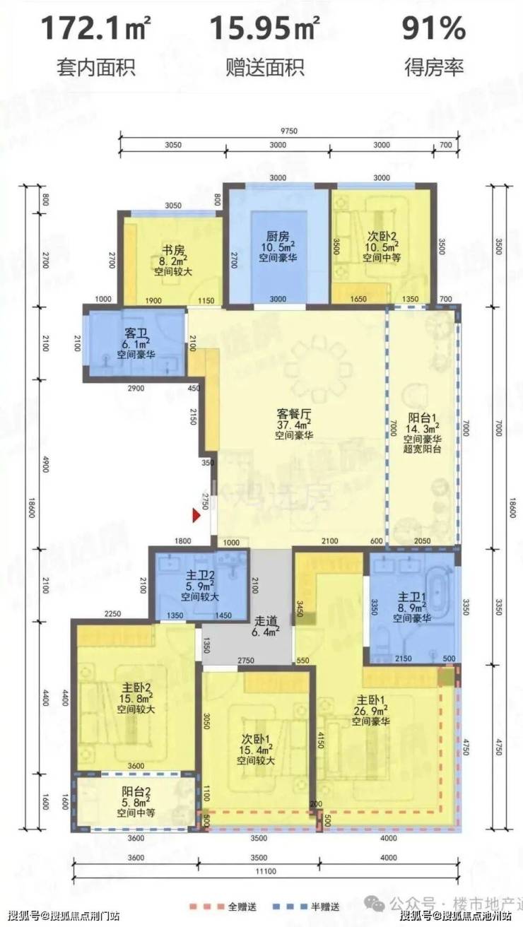 170㎡,4开间超南面宽达15.7米;餐客厅面积达到44个平方米;厨房开间达到4.35米。