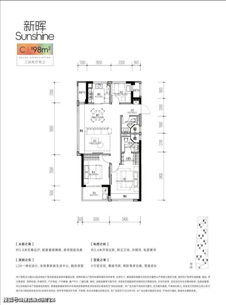 而且,总价极致压缩后,尺度却一点儿也不缩水,三开间朝南的面宽约9.5米!