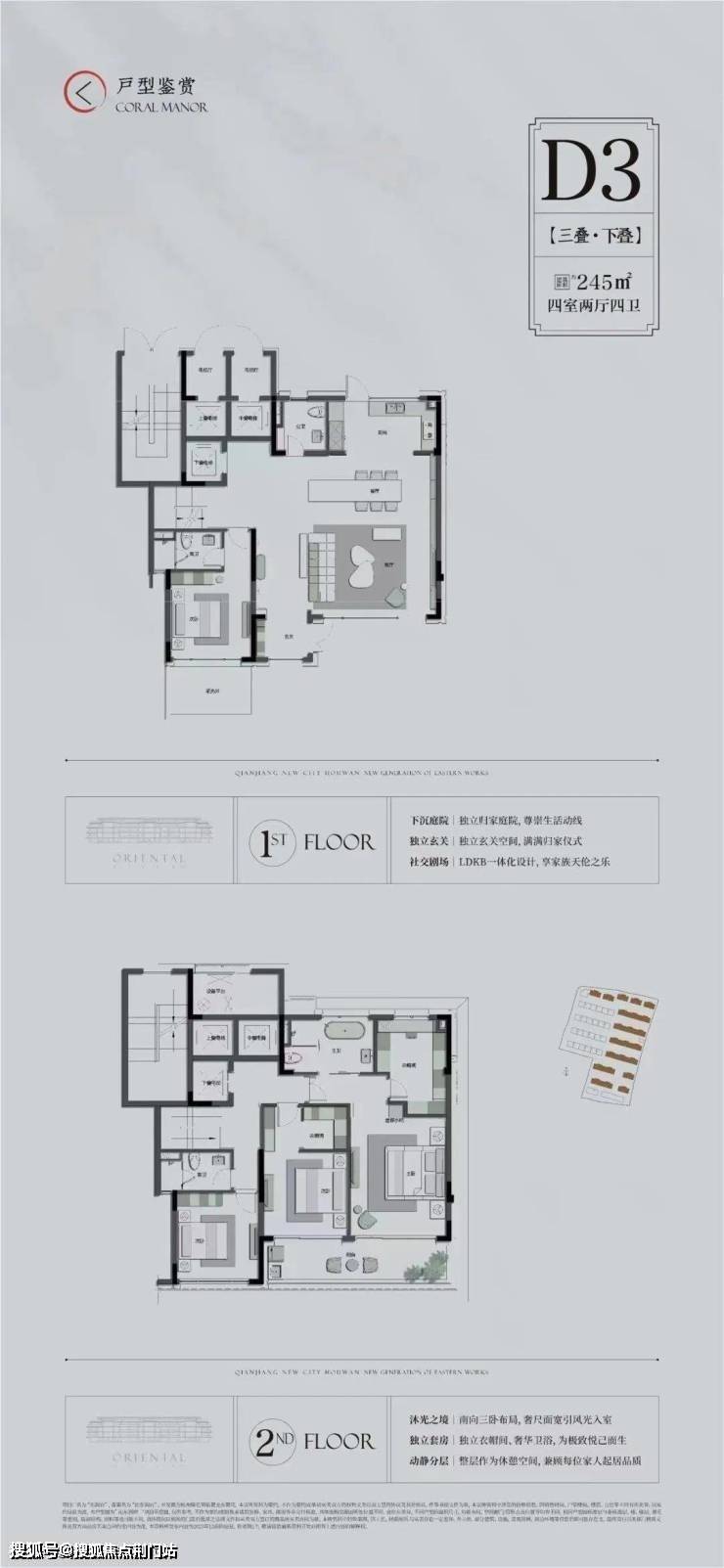 纯低密,是东润府热销的重要因素。项目地块容积率1.3,共包含17幢两叠、三叠的叠墅建筑,总房源仅186户,主力户型建面约243-280㎡。