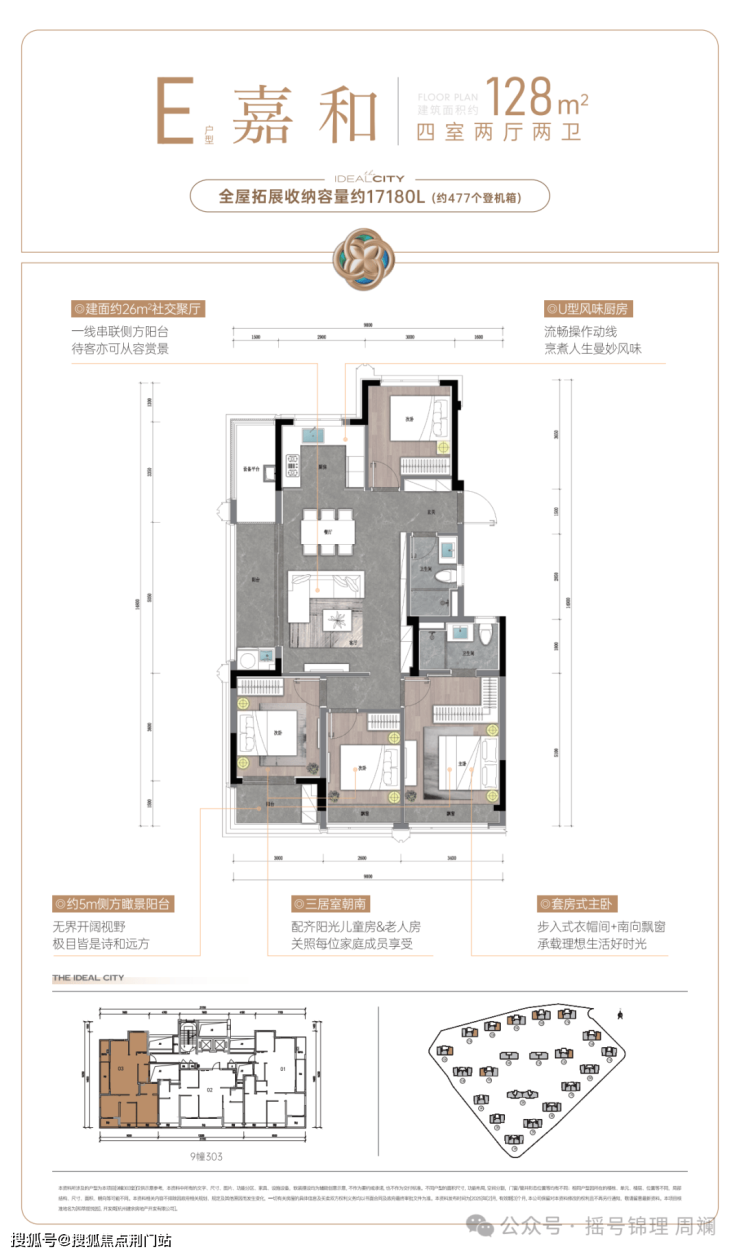 不止单价,就连总价也是低门槛,因为它的主力户型是建筑面积约96㎡-169㎡,其中建面约100㎡上下的小户型,占比达到了50%,总价200多万就够得上。
