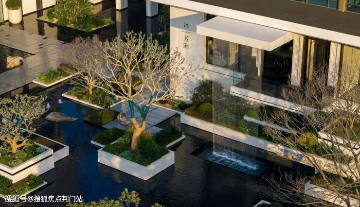 如果小胖没有记错的话,这应该是今年全杭州排面最大的楼盘前场。玩石、叠水、绿植、艺术雕塑高低错落分布,还有一面叠瀑从建筑立面里垂延出来。