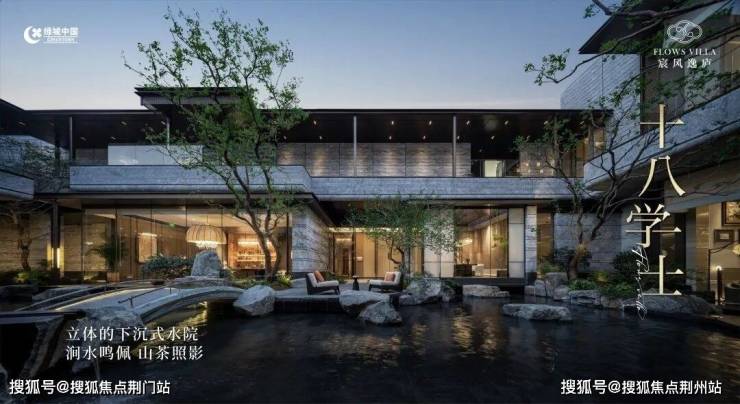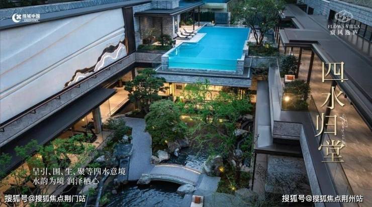 鼎筑约50米酒店式华盖门仪,进阶归家体验;引水入园,以溪涧、逸亭、瀑布、小桥约“150米中央景观水系松壑长风”;复刻《溪山清远图》。