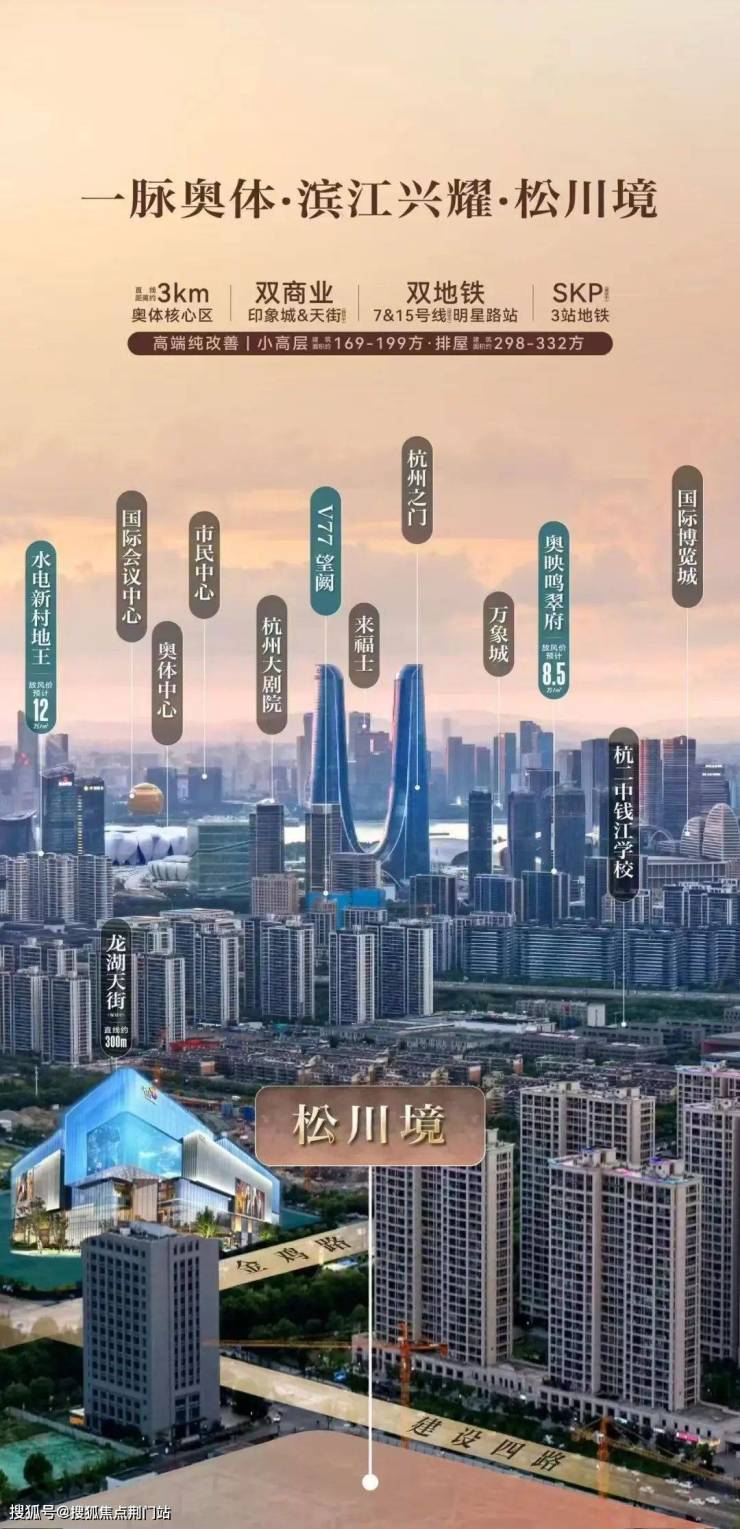 「松川境」位于建设四路(滨江产业动脉)和金鸡路(奥体顶豪基因)交汇处往东150米,处于奥体黄金十字轴之上。北接奥体,西连滨江,南邻萧山主城,周边汇集奥体印象城,奥体天街、万象汇等商业综合体,生活便利。