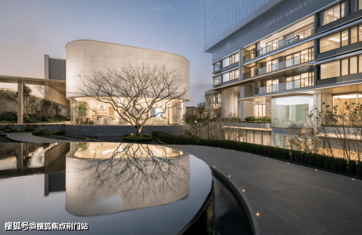 生活馆又以约5.1米挑高与无界玻璃消弭内外,半月弧形石材立面与静水中庭共构“掬水月在手”的诗意实践。