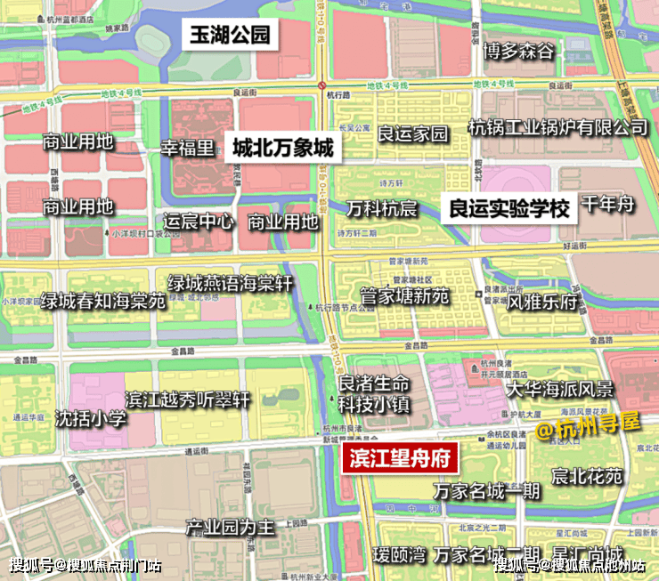 再看项目周边,整体以住宅和产业园为主,东侧为滨江万家名城等小区,北侧为良渚生命科技小镇。