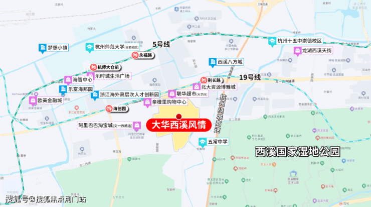 商业方面:世纪华联、北大资源博雅城、亲橙里、西溪八方城、龙湖西溪天街、梦想小镇等皆在侧。