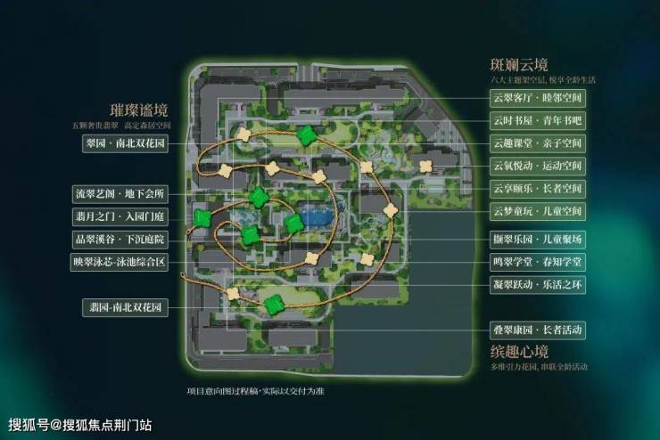 创新灵感源于19世纪美国“波士顿翡翠项链”的设计理念,通过形似“项链”的公园绿道。桂月云翠园以“翡翠项链”为母本,通过立体串联的景观手法,将归家的建筑景点逐一串联,配备下沉庭院+地下会所、泳池综合区、南北两大超5000㎡主题花园,营造高浓度生活体验。