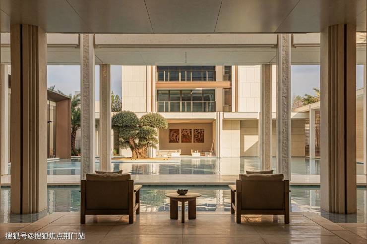 这个极简主义地中海风的改善住宅,有超2000方下沉庭院会所。
