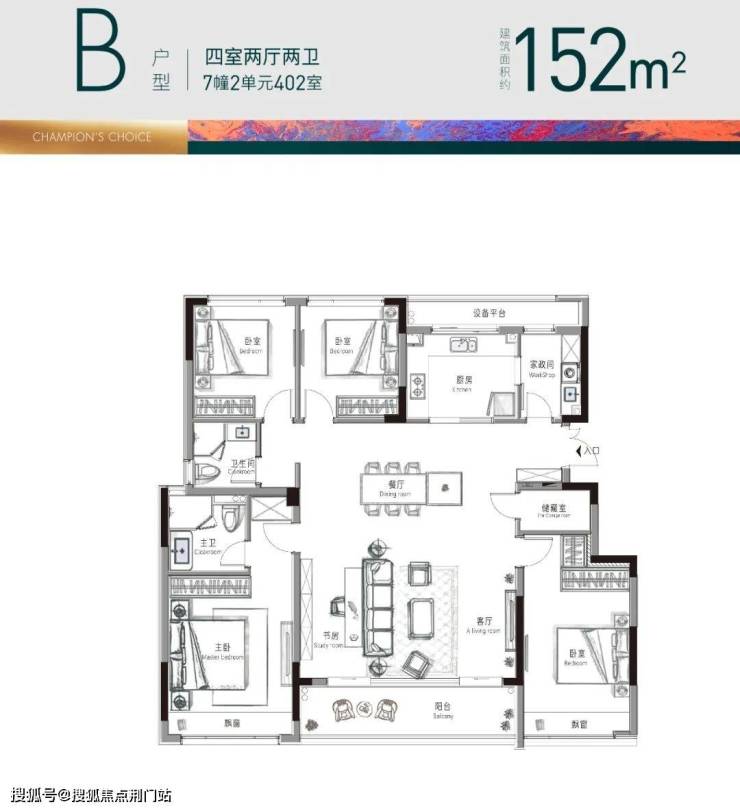 得房率最爆表的是约152㎡大四房,实用率竟有95%,尺度感秒杀同级高层。