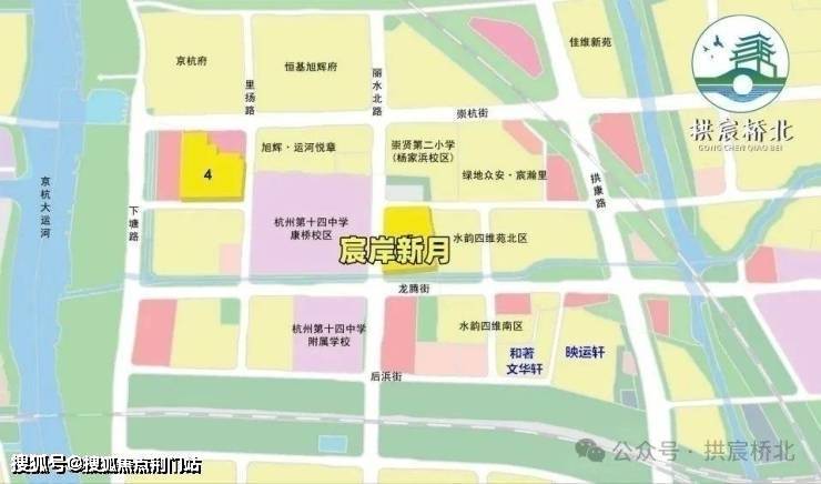 绿城·宸岸新月,也就是运河新城单元 GS1001-05地块,它位于拱墅区康桥街道龙腾街与丽水北路交叉口,步行距离在建的15号线龙腾街地铁站约650米。