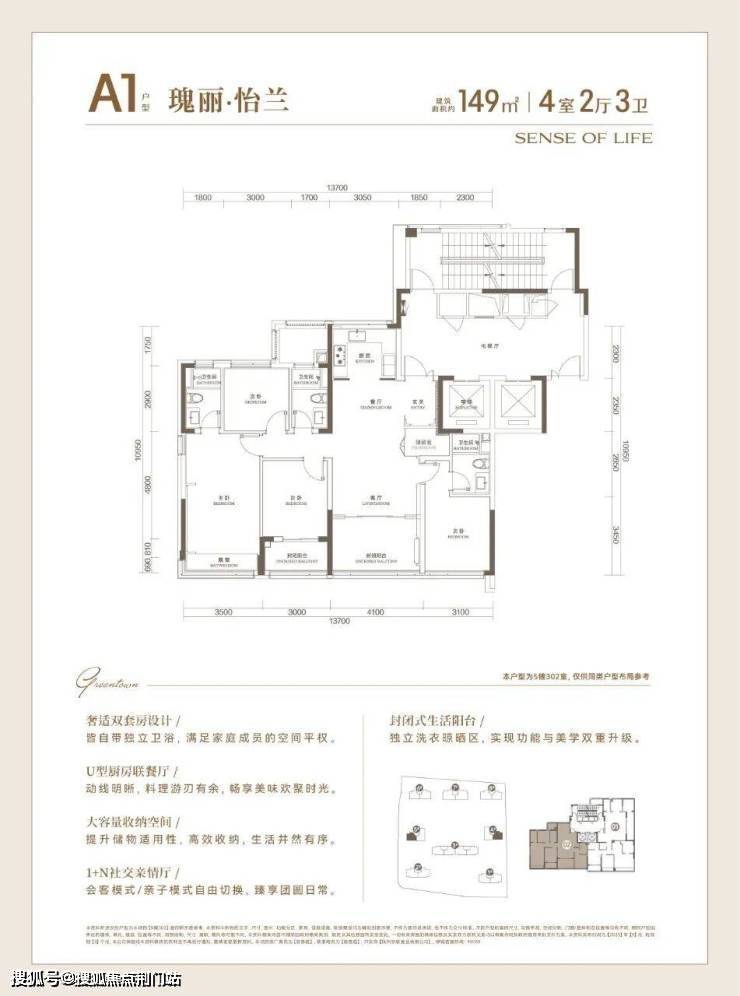 加上南向约13.7米的超大面宽,尺度感比市面上多数160方户型还要阔绰。