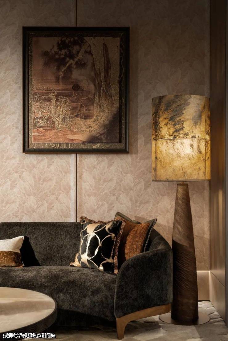 设计师巧妙提取良渚文化的线条语言,将那些镌刻在玉器上的古老符号与自然生长的图谱完美融合。水波纹琉璃壁灯将流动的液态美学凝固于金属支架之间,以光的韵律谱写现代隐奢。