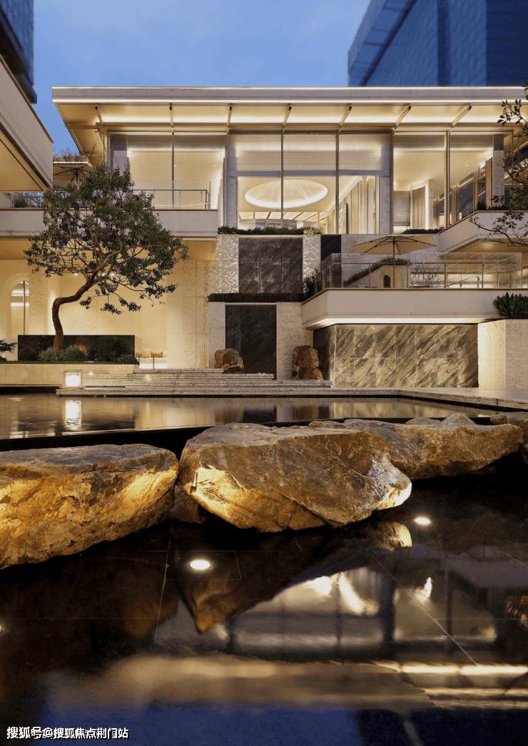 整体向内围合的布局,是对外界喧嚣的温柔疏离,亦是对内部价值的极致凝练。下沉庭院与错层露台构成的多维空间叙事,以「镜面水景」收束自然灵韵,演绎「隐于市」的禅意哲学。