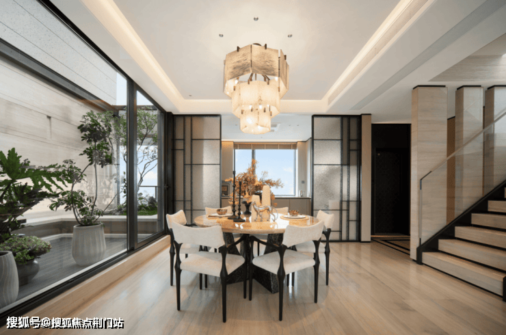 联排部分,绿城以巴黎卢浮宫玻璃金字塔为灵感,将金属雕花、石材立面与弧形玻璃幕墙进行解构重组,既保留了法式建筑的轴线感与仪式感,又通过大窗墙比(约65%)与270度环幕视野,将自然光影引入室内空间。
