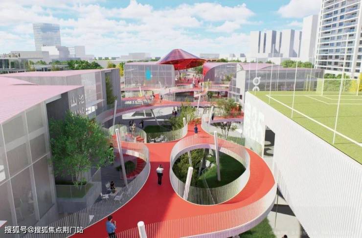 它本身先是一颗“超级珍珠”:一条架空跑道贯穿其上,连缀着空中连廊、运动公园、商业街区、美食街、咖啡书店等,犹如一座“空中版天目里”。