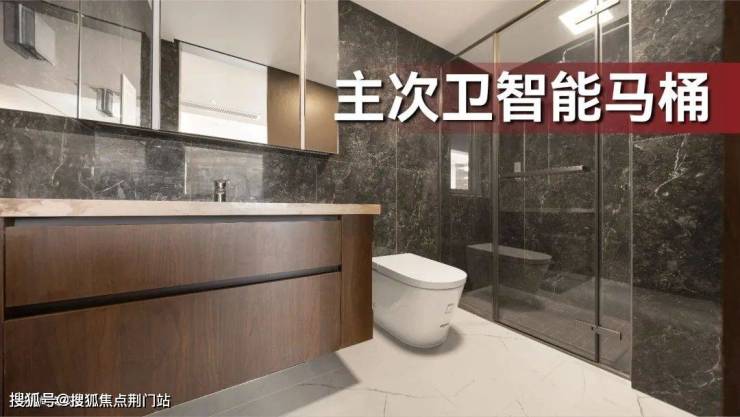 另外,不仅有东芝中央空调、威能地暖、新风(主卧、客厅)三件套配齐,甚至主卫、次卫均配双智能马桶,还有定制橱柜,整合各种收纳空间……