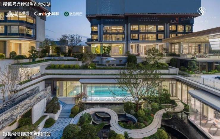 一个“浮岛”般的玻璃BOX轻盈置于景观之中,内含恒温泳池、健身房、网球室、party房等多功能社交空间,结合跌瀑水景,打造出静谧与动态交融的度假式体验。