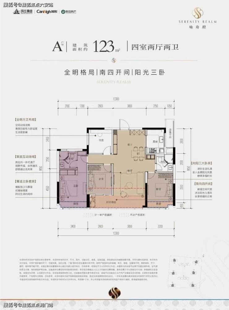 打造建面约123-173㎡的主力户型。该项目在户型打造上也有诸多突破,如建筑面积约139㎡户型采用约6.8米全景横厅,采光极佳;约21㎡主卧带步入式衣帽间,搭配270°转角飘窗,更奢华明亮;双洄游动线体系既保证隐私又创造多元互动场景。