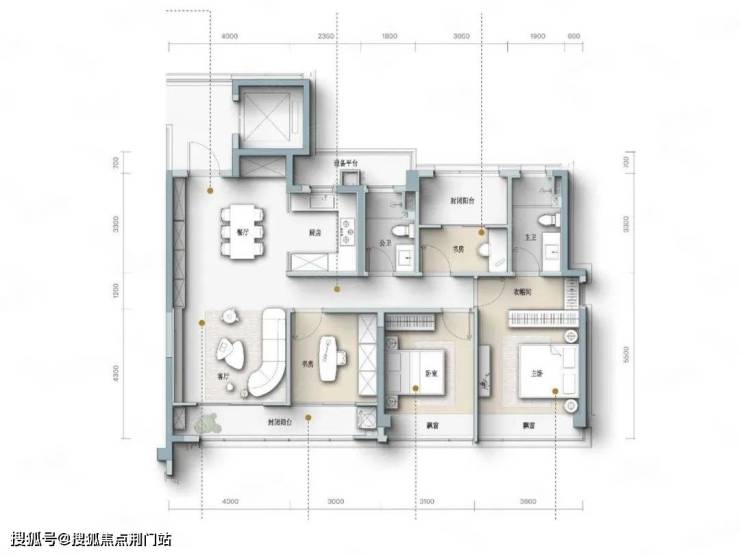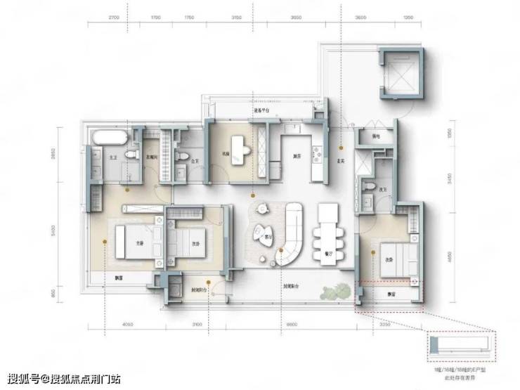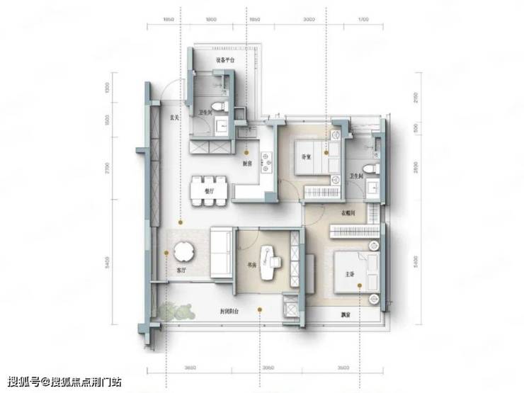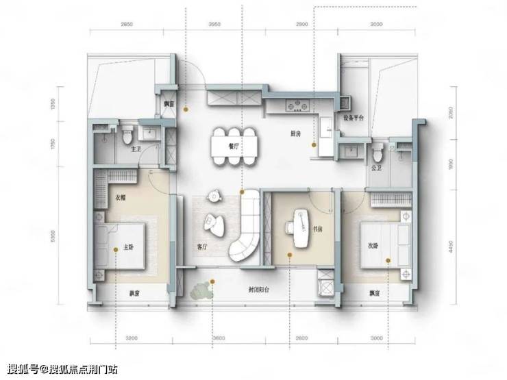 四开间朝南设计,主卧套房设计,宽景封闭式阳台。