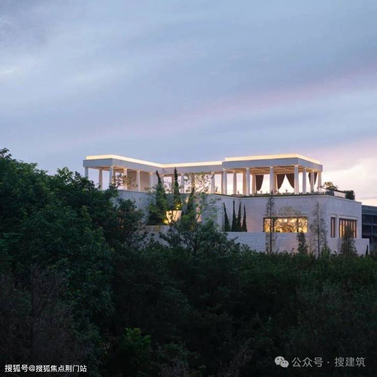 三楼景观瞭望台设置悬挑9米的无边镜面水池,被法式浪漫的柱廊环抱;向南望去,群山连绵,天际线高低起伏,美不胜收。每到傍晚,太阳回到这里,带来满池的霞光,让人忘却烦恼,沉醉于这份恒久的美丽之中。