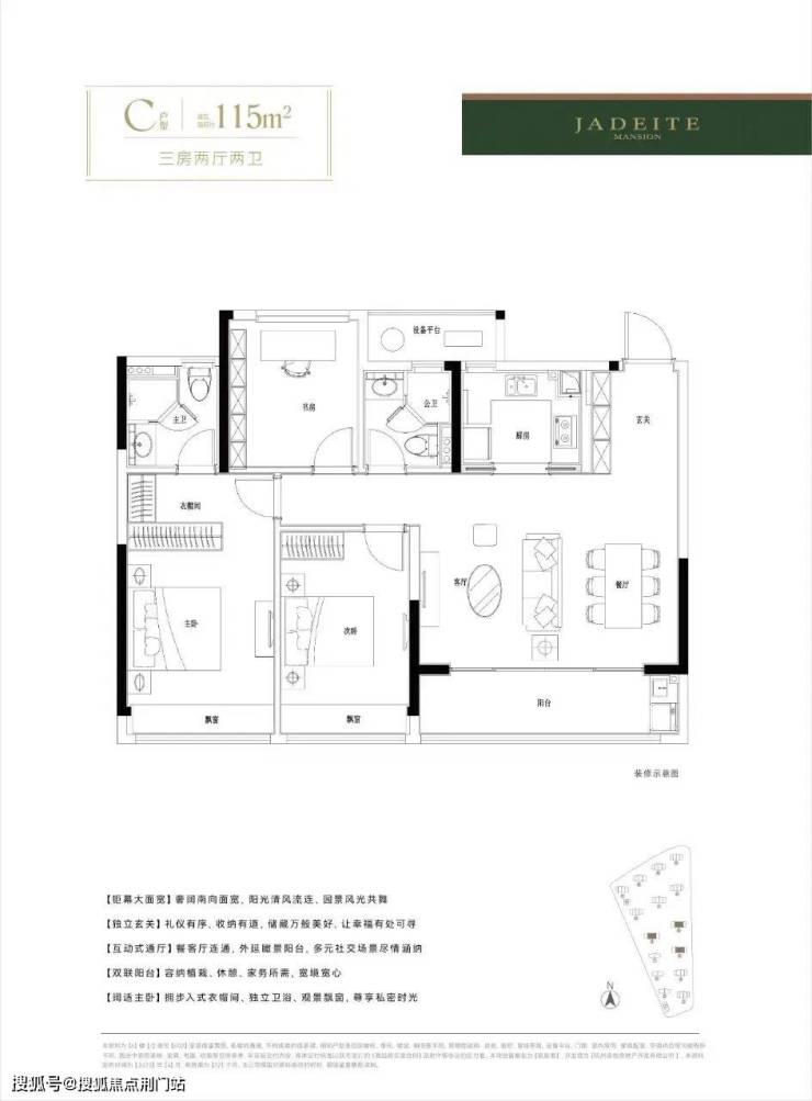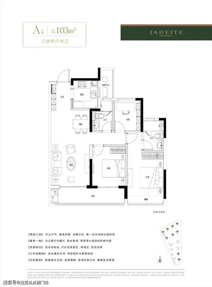 简单点评:是本批次的最大户型,三房朝南,双阳台,改善尺度拉满。