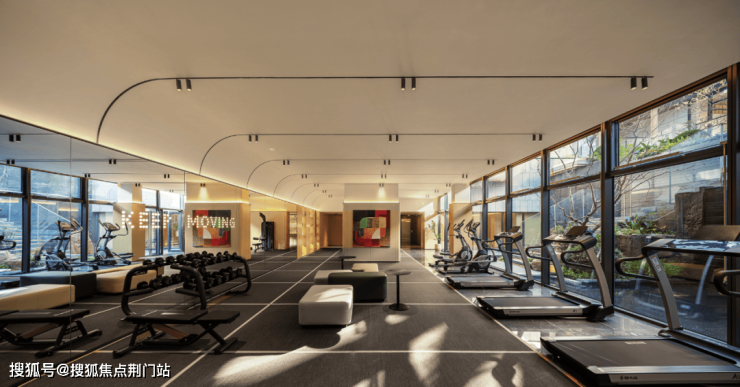 建筑方面,采用经典三段式美学构图,结合玻璃幕墙、质感涂料、金色铝板线条等,以鎏金感封面建筑,刷新板块天际线。