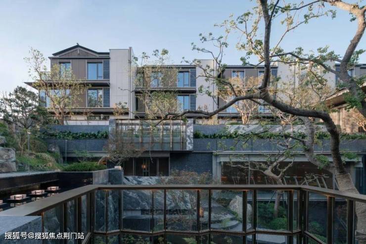 为此,立体庭院布局以中央水体为核心,建筑体量环抱形成向心秩序,有效强化了场域的凝聚力。游步穿行间,巨幅玻璃借现代框景手法,将外部景致抽象为动态立轴,通过尺度对比与光线渗透构建多重叙事。这一策略延续了宋式园林注重精神性与自然交流的美学,在狭小用地中拓展出幽深静谧、虚实相生的意境体验。