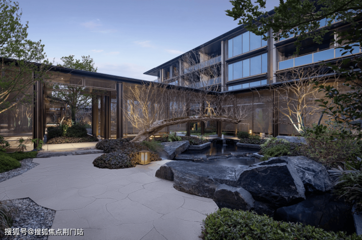 漫步于光影交织的幽静庭院,您将踏入一方充满诗意的天地。潺潺流水映照着婆娑树影,挺拔树姿为这片空间注入向上的生机,纵向延伸出无限的视觉张力。这座下沉庭院,不仅拉近了建筑与自然的情感共鸣,更使室内与景观紧密相连、和谐相融。每一扇窗户,都犹如框中的一幅生动山水画。