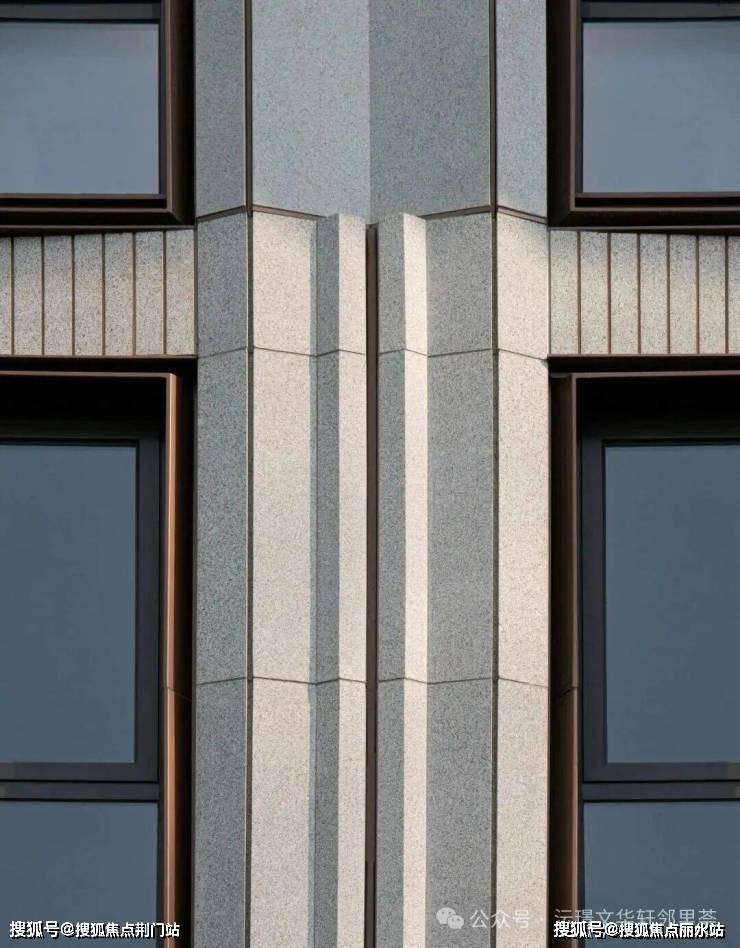 杭扇元素构建雅奢立面:沄璟文华轩的立面系统以理性建构逻辑实现艺术雅奢表达。设计溯源杭扇的“斜切角”与“折叠线”两大元素,将西方古典建筑的秩序法则与东方折扇的流动意象进行参数化转译。