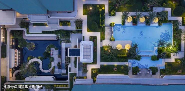 下沉式浮梦CLUB,未见其景,先闻其声。直瀑飞溅中,各种功能区渐次铺陈,恒温泳池、健身房、瑜伽室、网球室、Party房等。