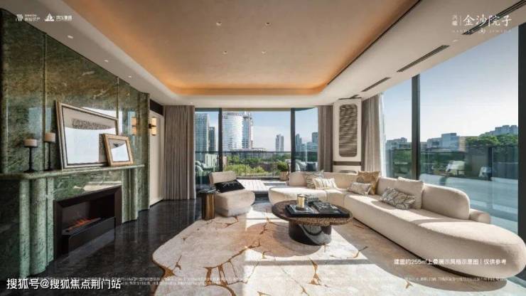 相比较纯低密项目,高低配的设置,让金沙院子拥有了那标志性的“镜面大水院”,可尽享庭院内约9000㎡的自然灵感花园和超2200㎡的特色水景空间。