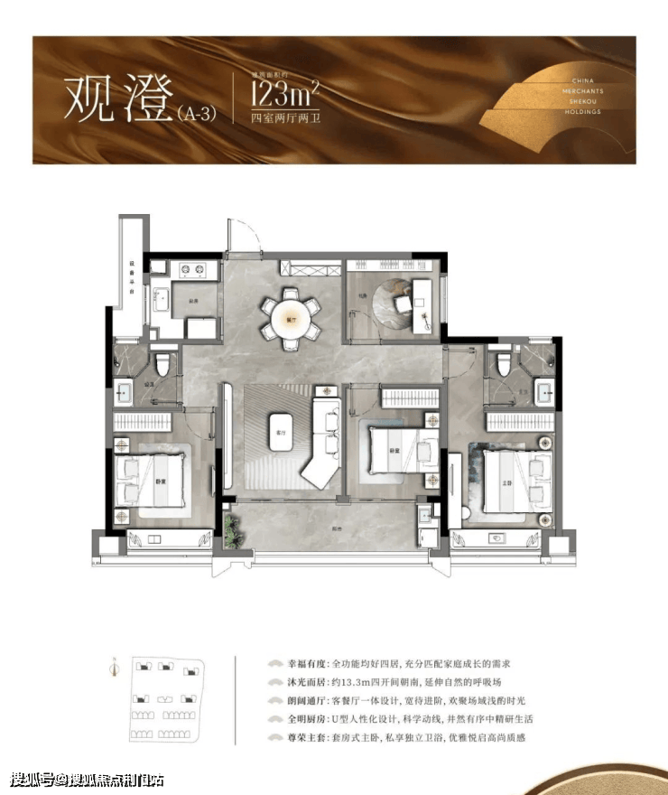 潮语臻境府的户型设计,打破了“4万+只能买刚需”的刻板印象,主力户型建面约123-168㎡四房,把“精质住宅”做到了极致。