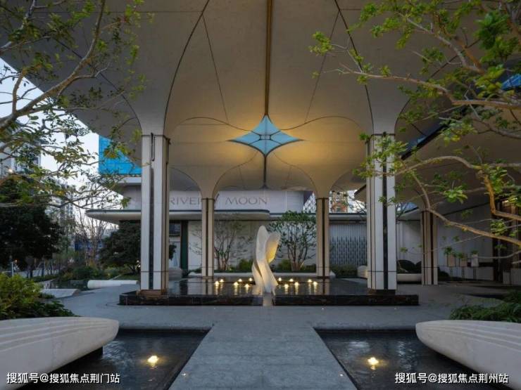 采用预埋式水下灯结合地面射灯的系统化照明方案,对夜间光影进行精确构图,强化水体倒影的戏剧性效果,整体把控并提升场景的意境与品质感。