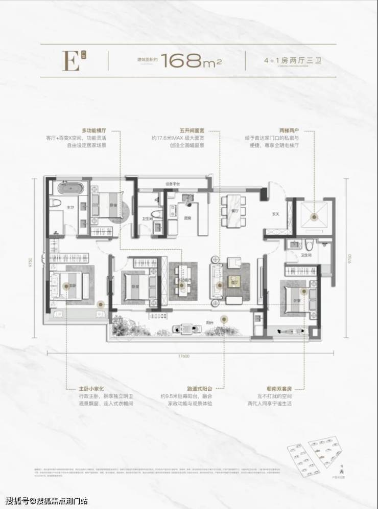 项目规划了98-168㎡多元户型,最引人注目的当属168方大宅,大师级豪宅式设计,最大约17.6米IMAX级面宽、最多五开间,创造全画幅窗景,定义临平“户型王者”。