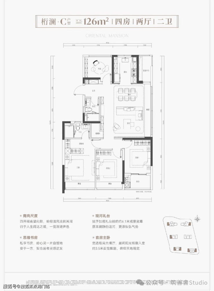 建面约126平米户型,四开间朝南的尊崇布局,主卧配3.5米宽景飘窗,更享6.1米观景宽幕,让您的家成为“运河头排观景席”。运河船只穿行,每一刻都是永恒的风景画卷。