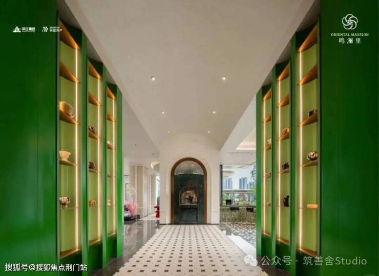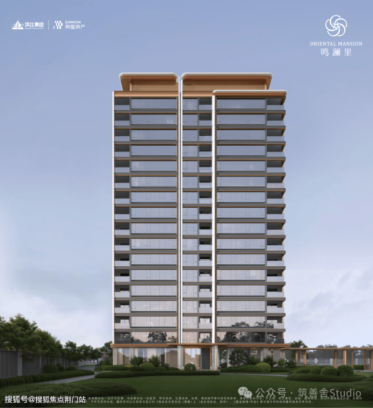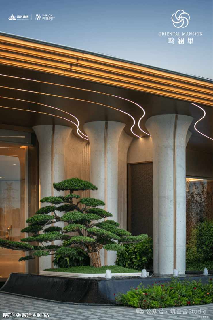 鸣澜里的建筑立面设计颇具匠心,四面铝板、造型格栅与大面玻璃幕墙的精妙设计,辅以深灰基座与鎏金窗框的点缀,构筑出沉稳大气的风格,赋予建筑轻盈漂浮的视觉感受。通过打磨建筑单体的圆角弧度,不仅丰富了层次感,更营造出通透开阔的空间意境,引领未来审美新风尚。