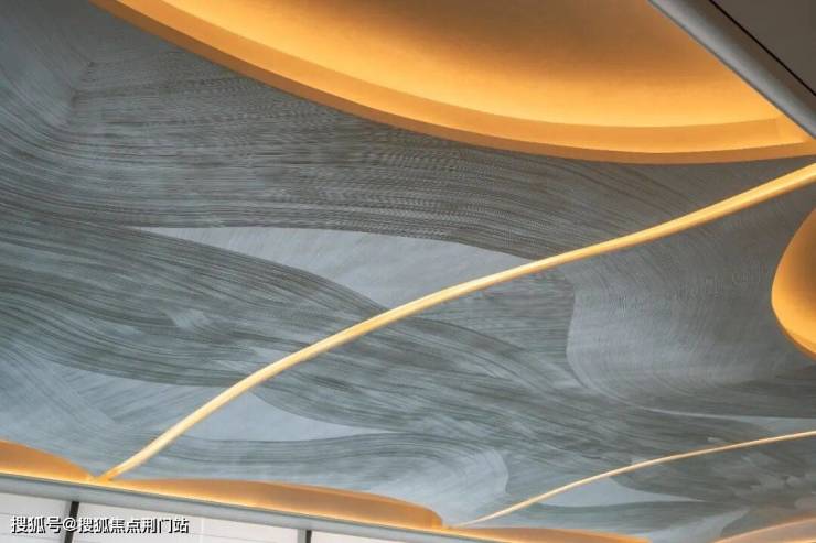 更多惊喜藏在天花板——采用游纹刻石工艺,水波纹画面,没有直射光源。设计师显然是真正热爱游泳的人,考虑到了仰泳时的视觉舒适度。