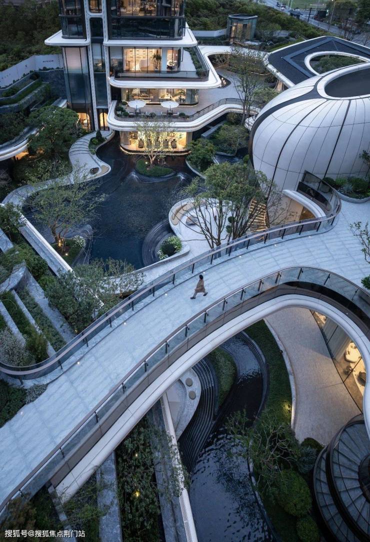 抬高之后,生活直接被抬升至城市之上,隔绝了喧嚣,江景视野和采光也极大提升。 然后,他们又向下挖了6米,形成中心园区约17.5米的高差,打造出“立体峡谷地貌”。