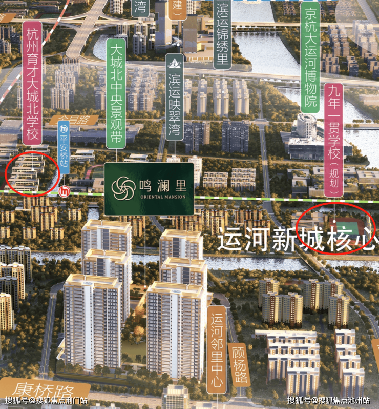 直线3km范围内有27个幼儿园;6个小学,如杭州市文渊小学、杭州市文渊小学(新城校区)、崇贤第二小学(杨家浜校区)、杭州市杭行路小学谢村校区、杭行路小学运河校区等;5个中学:浙江省杭州第十四中学康桥校区、浙江省杭州康桥中学、浙江省杭州第十四中学附属学校、运河新城GS1003-A33-15地块36班初中、余二高教育集团附属沾桥中学。