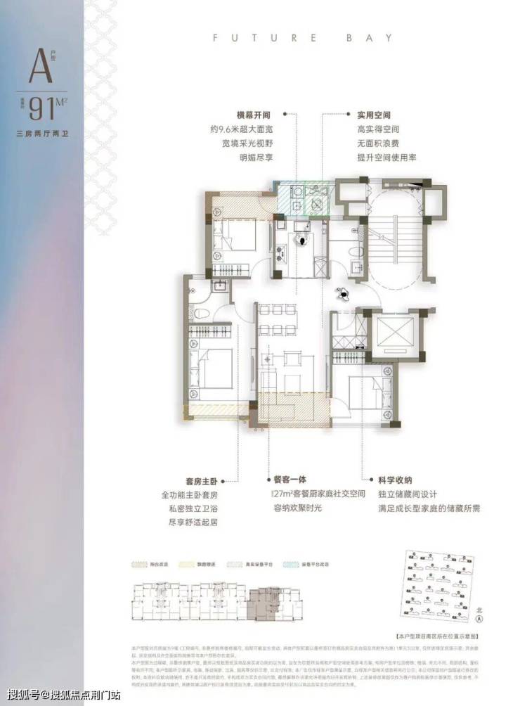 整体约1.01-1.3低密规划,云之城带来建面约91-165㎡望云洋房,创新户型实现超高得房率。立面融合现代与东方元素,营造山水生态之间的低密TOD生活方式。