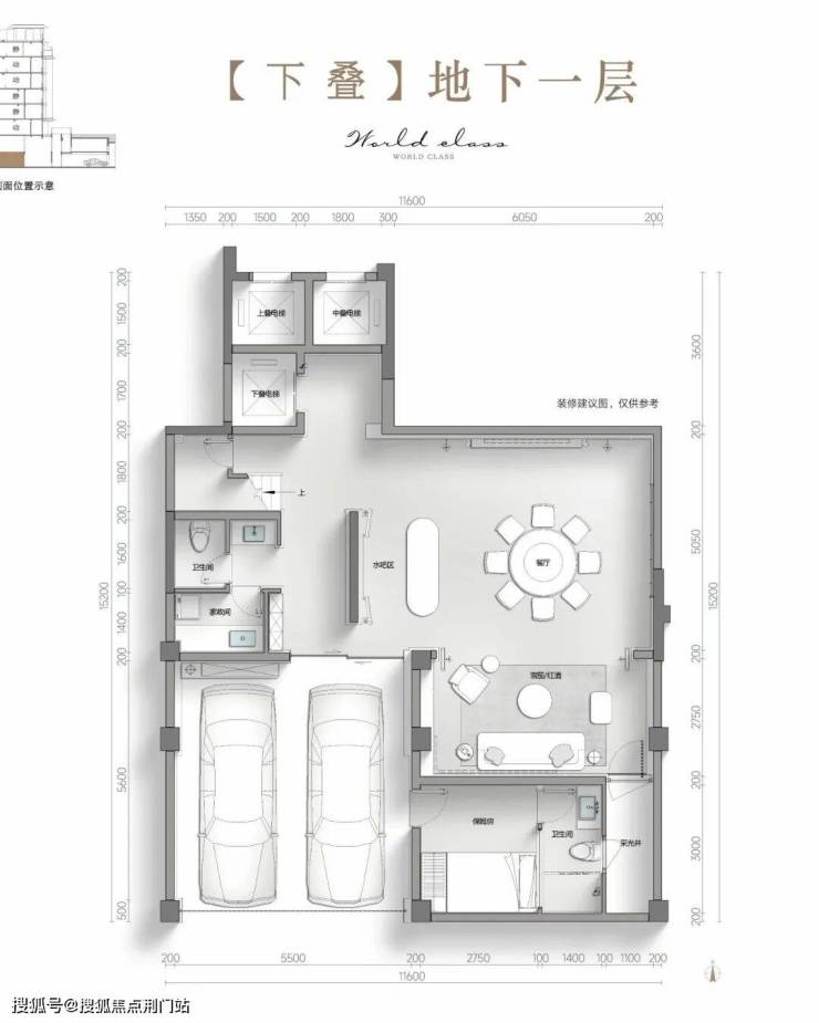 更夸张的中叠和下叠地下室,层高在杭州叠墅中第一次达到约6.6米。