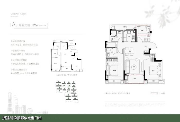 杭颂星澜府在户型的设计上更加游刃有余,主力的89方户型设计成了类四叶草的布局:动线合理、减少走廊的浪费、各卧室独立且私密。同时三开间朝南的设计,面宽达到了9.7米,主次卧均带有飘窗,采光充足,而且主卧为套房的布置,让生活更舒适。