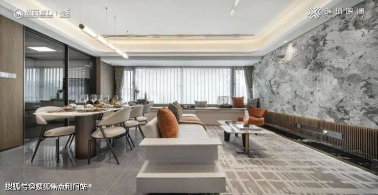 包括室内餐客厅圆弧吊顶、全屋墙布的色彩、中央空调的隐形设计,以及厨卫五金家电的质地,他认为,人只有在质感的家中,才能得到精神的放松。一直以来,他秉承长期主义的理念,对于置业更是如此,宁可惦着脚买,也不要将就。
