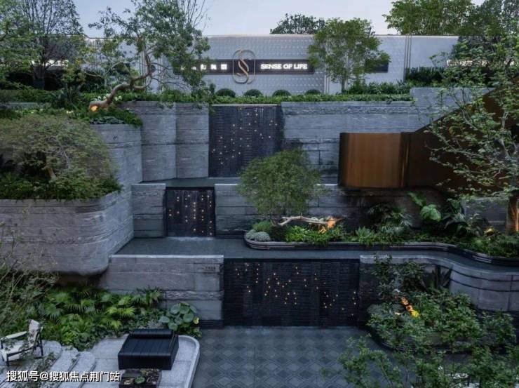 迈入大门即是瑰丽水院,5株婆娑香橼,舒展在梵克雅宝造型树池之中,如同镜面上的舞者,潺潺水幕如墨色丝缎一般展开。