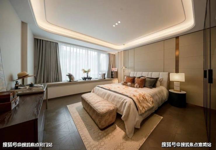 三层则完全留给主卧套,卧室区就超过了40㎡,外接L型大露台;衣帽间大得可以搁下展示柜,将珠宝和腕表一一陈列;阳光最好的南向小房间,做一间书房最是合宜。