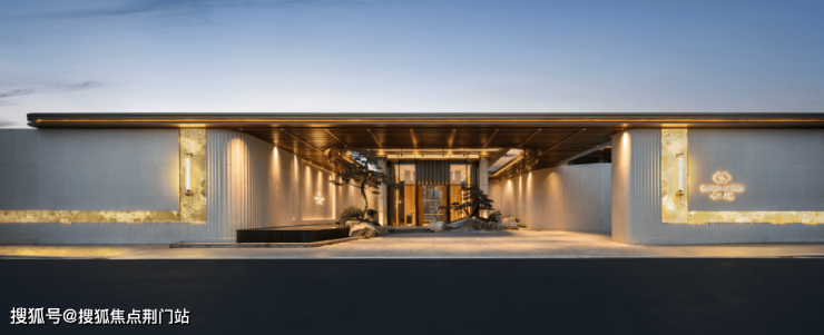 约43米尺度的恢宏门庭,两侧黑松耸立,尊崇感从上而下地铺洒。