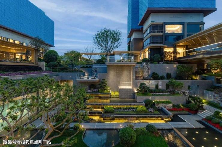 庭院下沉、整体小区抬高,所以整个归家大堂上下足足有三层,差不多有约16米多,而光是对面的立体花园落差就有约8米+。