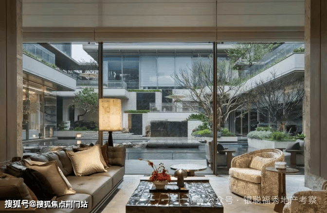 【下沉庭院】庭院巧妙利用约6米的高差,营造出丰富的空间层次感,中央布置大面积立体镜面水景,如诗如画。