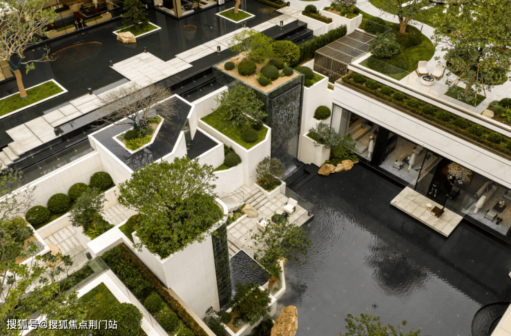 景观呈现的是一个立体的、全境洄游的园林。下沉庭院、镜面水院、阳光草坪,以多维垂直的角度,诠释着风景与日常生活的深度交融。