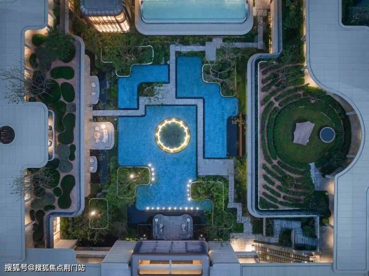 四向归家的大门设计,打破了常规楼盘至多两个入口的局限,让出入更加自由,生活动线也更符合日常需求。 整体抬地5.4米的设计,不仅抬高了地势,同时将不利设施巧妙隐藏,更塑造了归家的仪式感。南向主入口以玉琮造型石柱、铝板挑檐和汉白玉雕塑营造出温润如玉的入口氛围,同时配备无障碍平接设计和多类电梯,确保每一次归家都顺畅便捷。
